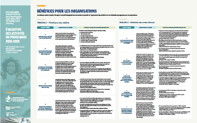 RAPPORT D’ÉVALUATION DES ACTIVITÉS DU PROGRAMME D’ADAPTATION DES PRATIQUES AUX RÉALITÉS PATERNELLES (PAPPa) 2015-2019